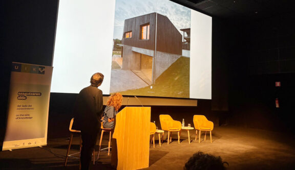 Bilboko Ingeniaritza Eskolako ikasle Argi Jaca-Madariaga Ominettik badaki material honek eraikuntzan dituen abantailez zer edo zer. Bere Master Amaierako Lanak, “Egur marko arineko fatxada industrializatuaren irtenbidea: isolatzaile termiko tradizionalen eta bio-oinarridunen karakterizazioa”, egurrez egindako onenaren saria jaso zuen; mila euro, Oskar Azkaratek emanak.