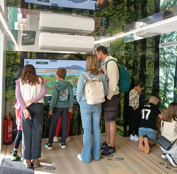 Bi hilabetez, kamioiak milaka bisitari hartu ditu, horietako asko eskolakoak, basogintza sektorearen balio-katea eta tokiko egurraren aldeko apustua egitearen garrantzia ezagutzeko aukera izan dutenak, baso-ekonomia zirkular eta karbono gutxiko baten oinarri gisa. Gune honetan, bisitariek ikus-entzunezko eduki digital erakargarriekin elkarreragin ahal izan dute, eta modu ludiko eta dibertigarrian ikasi ahal izan dute. Unitatearen barruan, egurrezko produktuen, dinamika interaktiboen, jolas didaktiko eta digitalen, “Ñupi” basoko iratxoaren eta infografia sektorialen erakusketa bat izango zuten zain.
